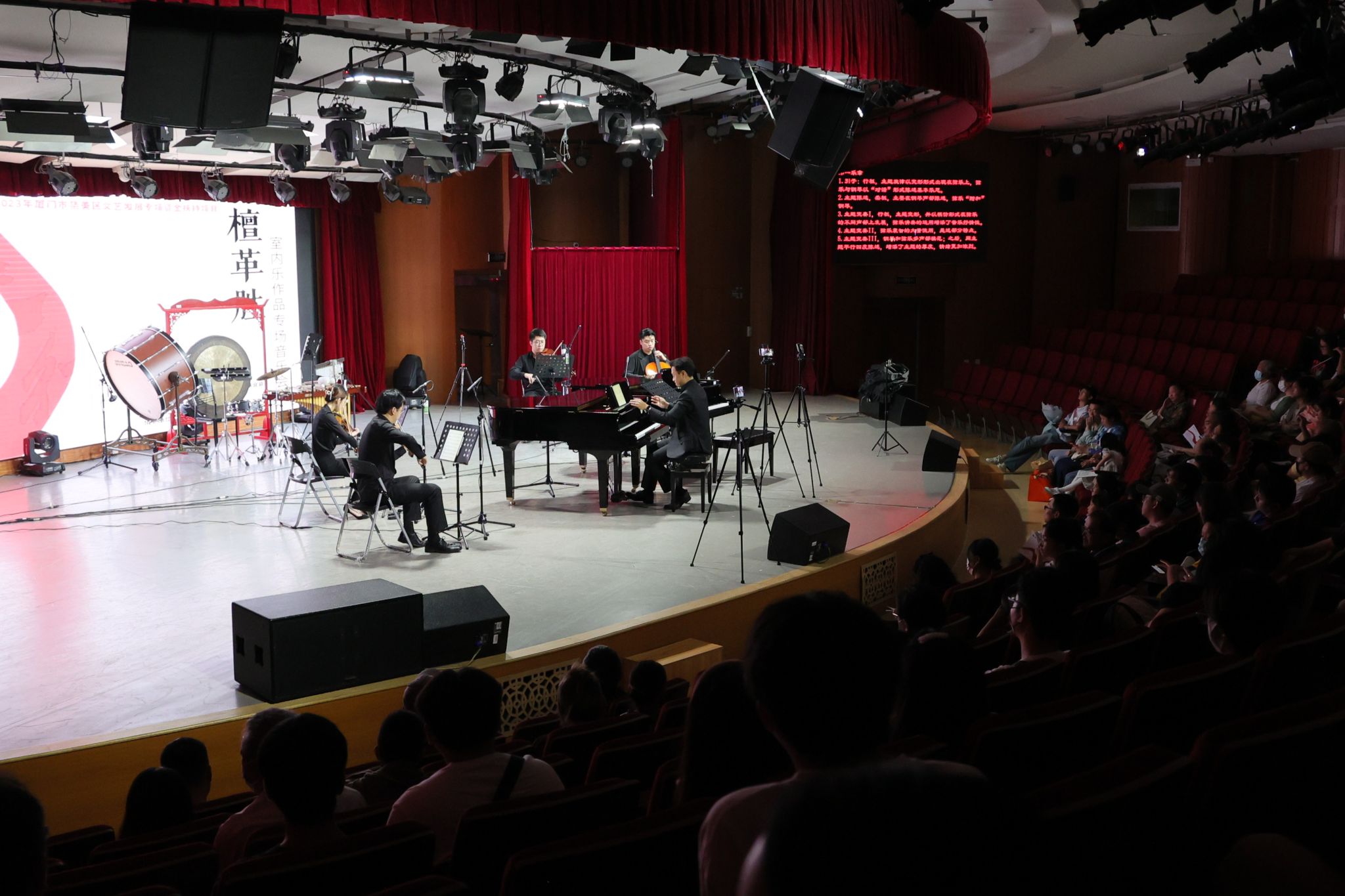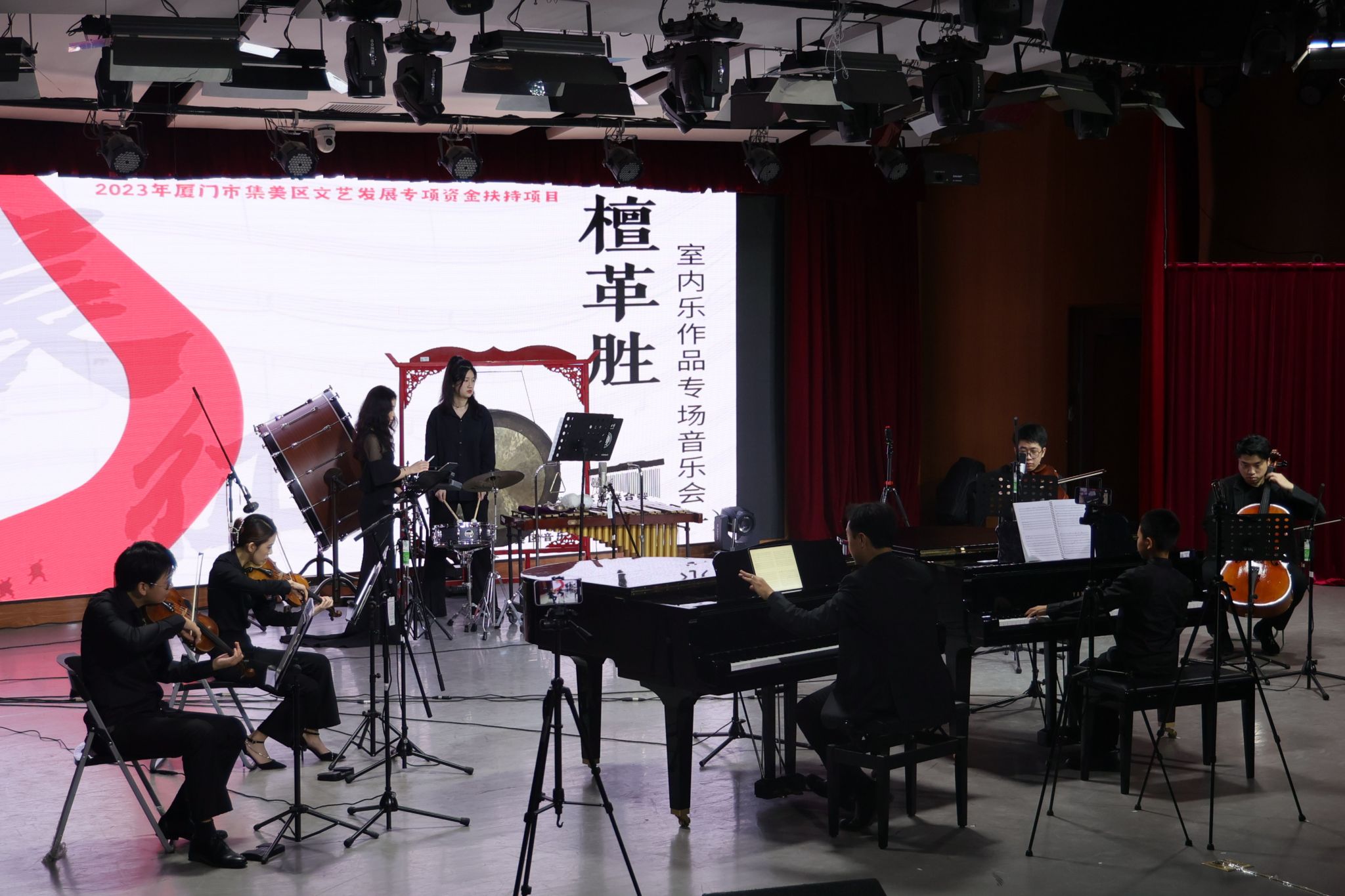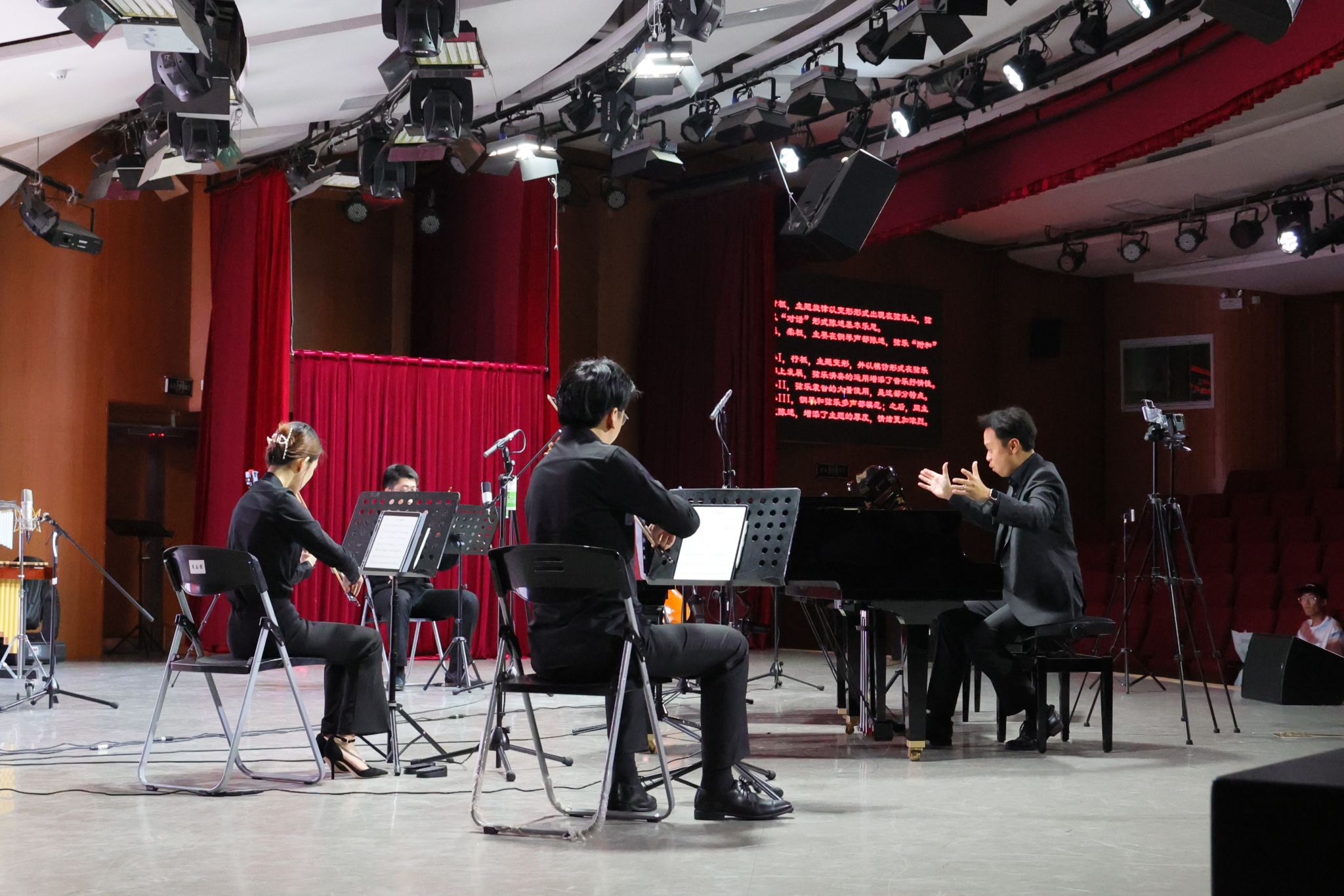 谈及此次室内乐作品音乐会,檀革胜说:“目前在授的理论课程,实则是为实践奠基,就艺术而言,若仅关注形而下层面,作品将空洞无源,那无疑是艺术创作的自缢;但若仅将目光置于理论处,而无视实践之重,则终会走向‘概念之玩物’。希望本场音乐会为大家带来视听享受的同时,更加注重发扬和传承社会主义先进文化和革命文化、中华优秀传统文化,为民族立身、为文化立命。”
