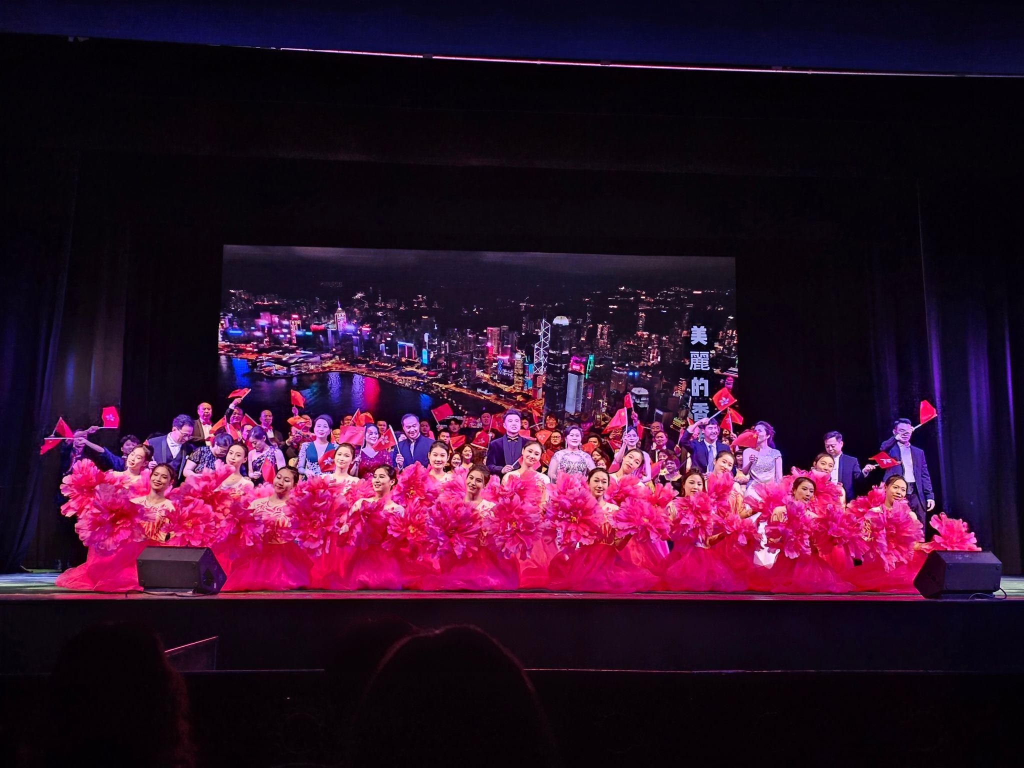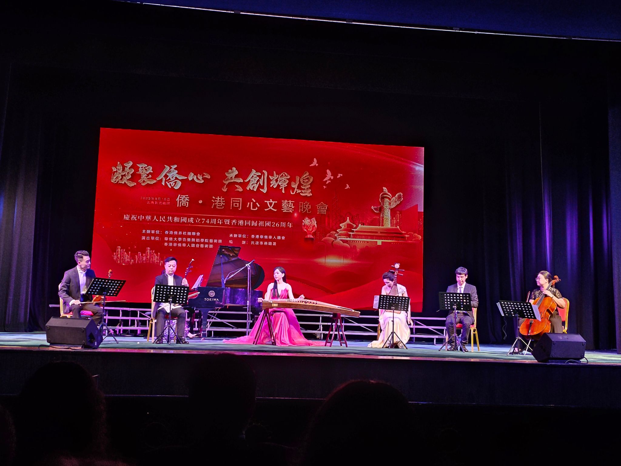 庆祝中华人民共和国成立74周年暨香港回归26周年“凝聚侨心 共创辉煌 侨‧港同心文艺晚会”,9月18日晚在香港新光戏院大剧院上演。晚会由香港侨界社团联会主办,香港华侨华人总会承办,我院艺术团和香港华侨华人总会艺术团联合出演。