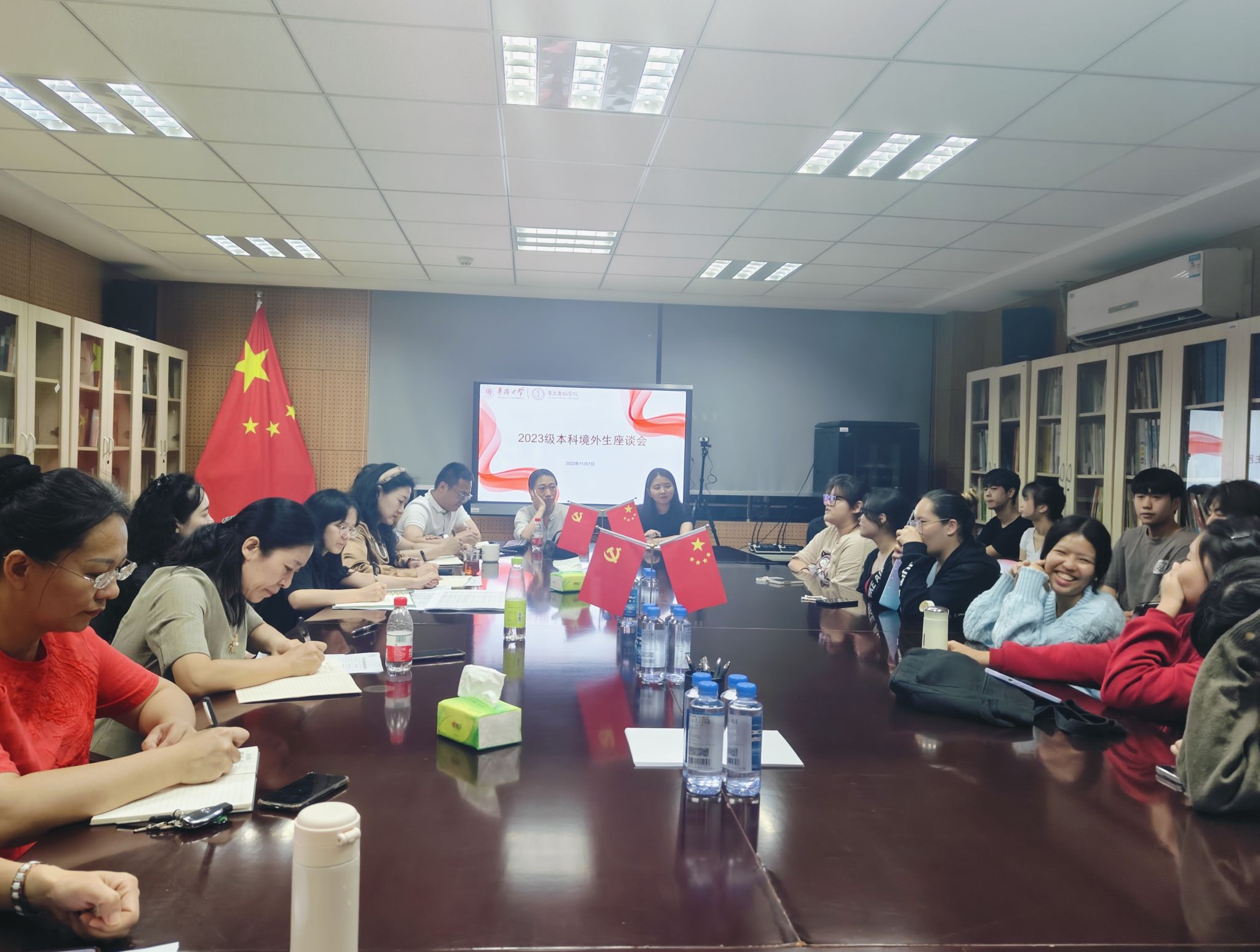 为了进一步了解我院境外新生学习和生活现状,帮助境外新生更好适应大学学习生活,11月7日下午,我院在音舞楼210会议室召开座谈会。来自学院2023级的本科境外生全部参会,学院党委委员、院领导、系主任、辅导员、教学秘书等出席会议。