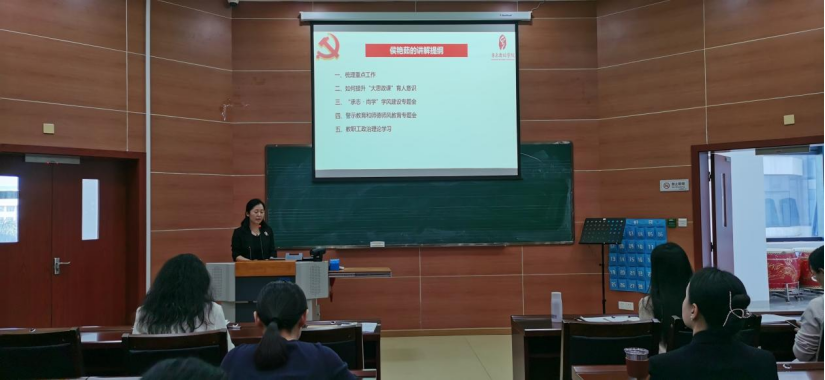 接着,侯艳茹书记梳理了近期的工作要点,提出高度重视党建与业务的融合,系主任、教工党支部书记要多沟通多协作,真正实现通过融合实现“党建引领业务、业务促进党建”。围绕如何提升“大思政课”育人意识、做好“承志·尚学”学风建设等方面进行工作布置;同时在会上进行警示教育和师德师风教育,强调全体教职工知准则、守底线。要求学院每一个人都要怀着“我们每个人都是主人翁、学院才会好;学院好,我们每个人才会更好”的工作理念。