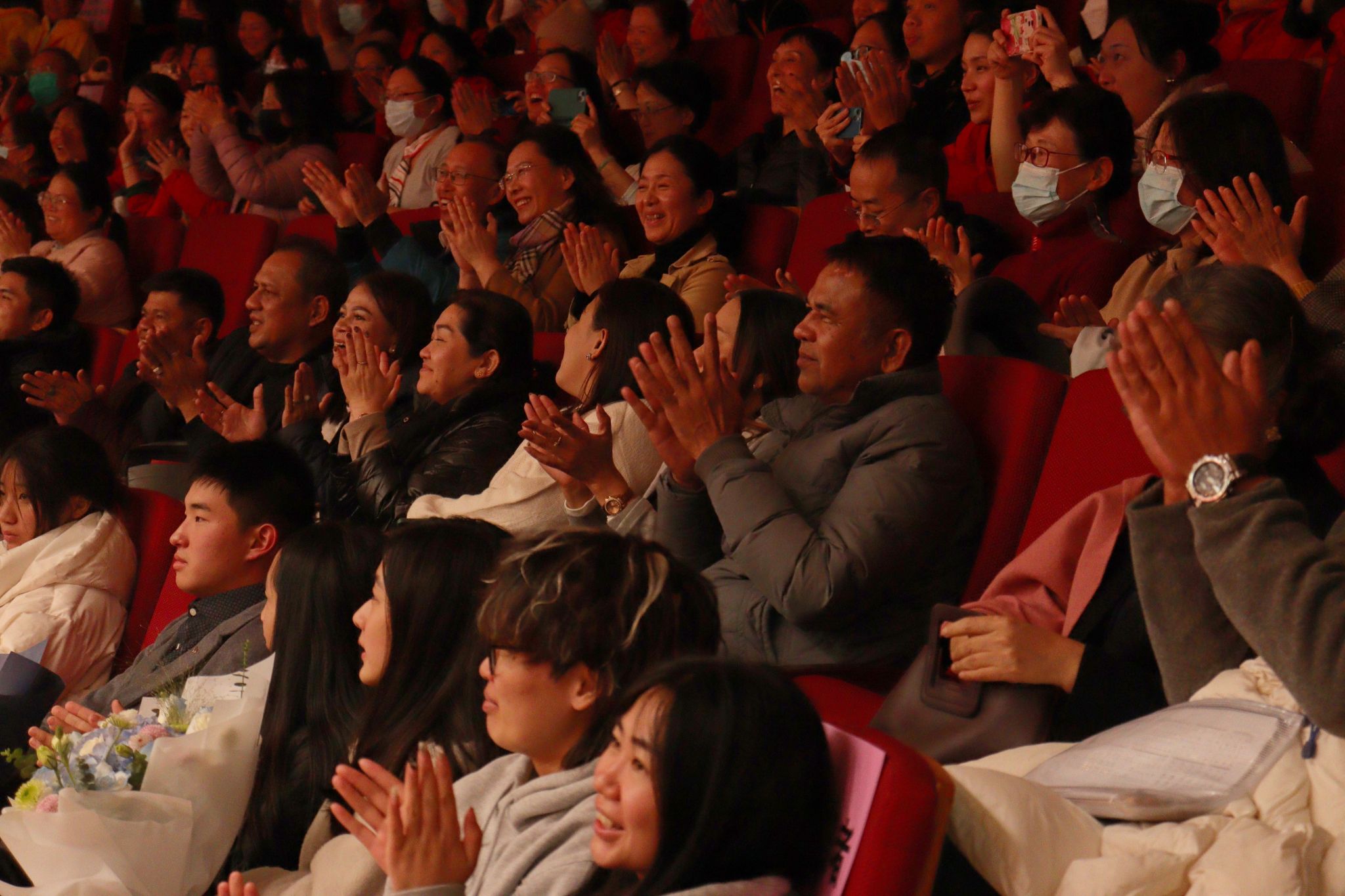 正在我校交流学习的“汉语桥”教育工作者泰国西南地区访问团、2023年“华文教育·华文教师”研习班学员、“中国寻根之旅”冬令营营员及领队等200余名海外华文教师、华裔青少年与我校部分师生受邀观看演出。