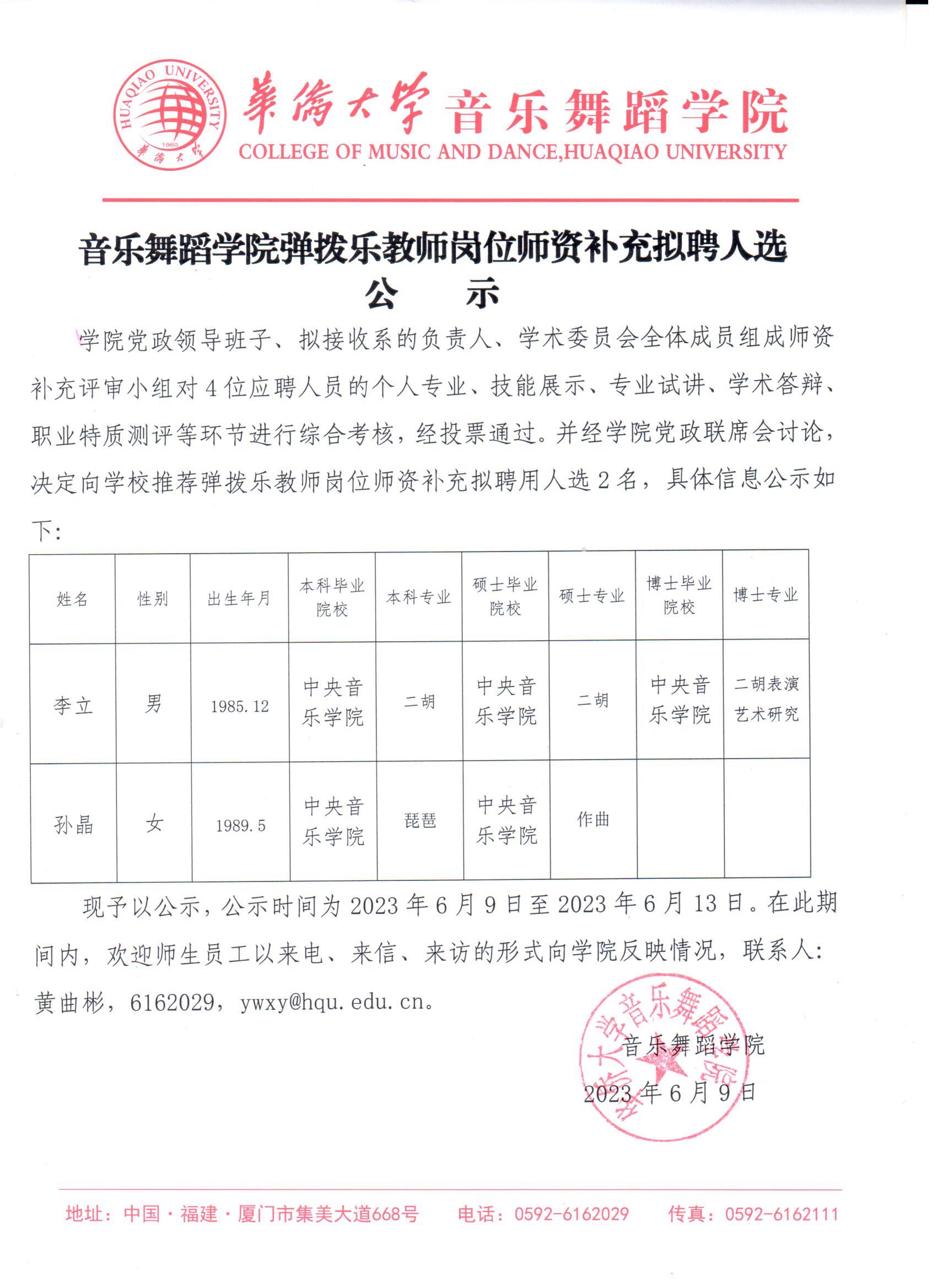yl88858永利集团弹拨乐教师岗位师资补充拟聘人选公示