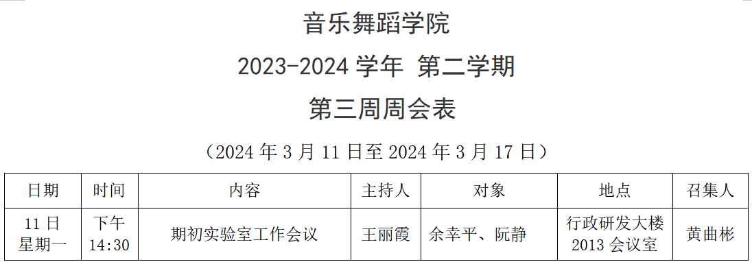 yl88858永利集团2023-2024学年第二学期第三周周会表