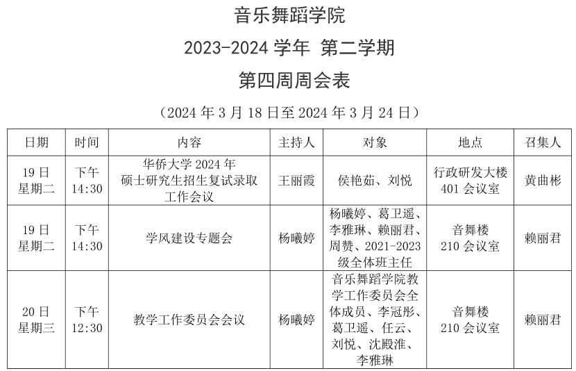 yl88858永利集团2023-2024学年第二学期第四周周会表