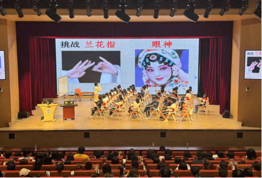 在授课过程中,主讲教师通过《牡丹亭·游园》经典选段“姹紫嫣红开遍”展开教学,以“不到园林,怎知春色如许”为引,生动阐释了昆曲艺术的审美特征。教师现场示范了昆曲特有的“水磨调"唱腔,详细解析了其将字头、字腹、字尾拉长处理的演唱技巧,并指导学生进行“一板三眼”的节拍练习。在表演教学环节,教师通过眼神、手势、步态等程式化动作的分解演示,展现了昆曲表演艺术的规范化体系,同时以曲笛伴奏示范,说明了乐器在烘托剧情氛围中的重要作用。