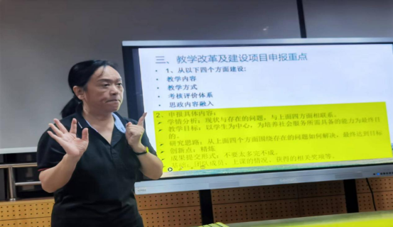 为深化本科教育教学改革,提高教学水平和人才培养质量,积极探索富有侨校特色艺术人才培养模式,我院舞蹈系针对学校教务处开展的2022年校级教育教学改革研究项目申报工作。为切实帮助教改课题研究组厘清研究思路,扎实做好2022年教改项目申报书的规范论证,4月29日上午舞蹈系邀请化工学院许绿丝教授,结合自身的科研教学经验,详细讲解了校级教改课题申报书规范论证模式。