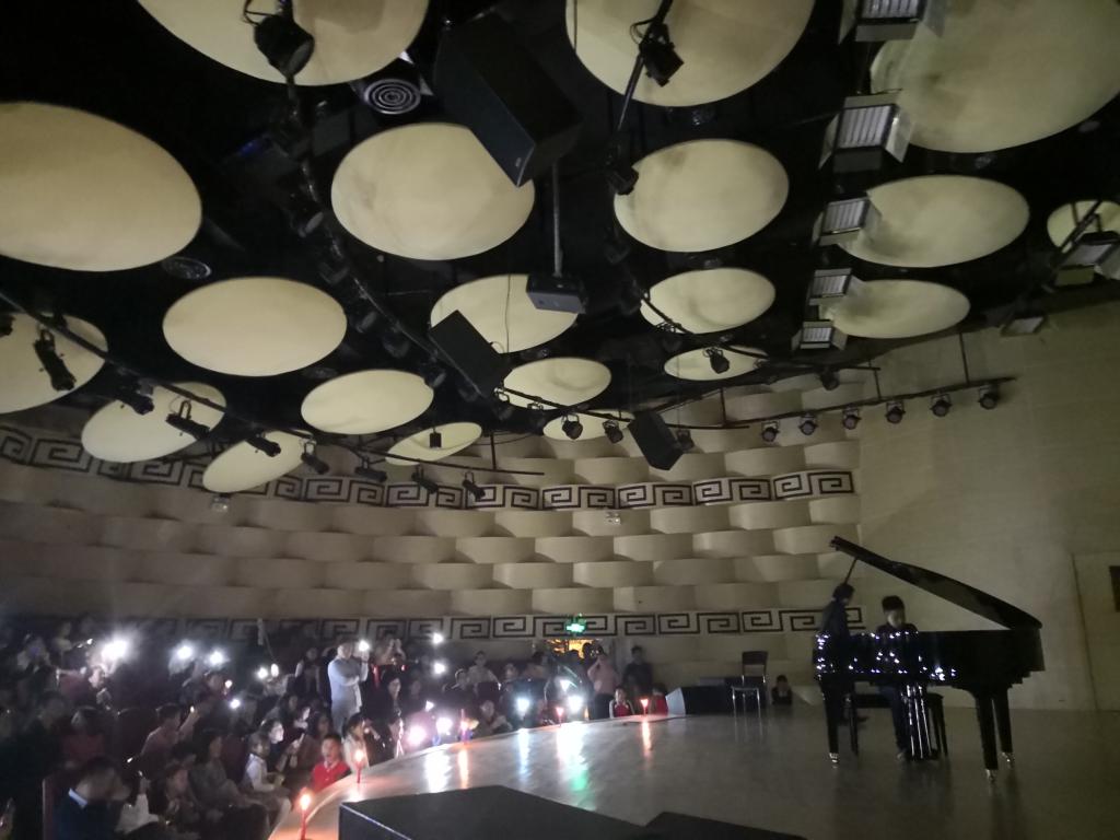 讲座中穿插了当晚响应全球提倡环保节能的熄灯一小时活动,音乐厅点起了浪漫的蜡烛,响起了动听的钢琴声 - 德彪西“月光”。表演嘉宾是李金星教授的爱徒,上过美国艾伦秀的网红神童王帅文Ryan Wang, 他细腻的演奏震撼了全场观众。