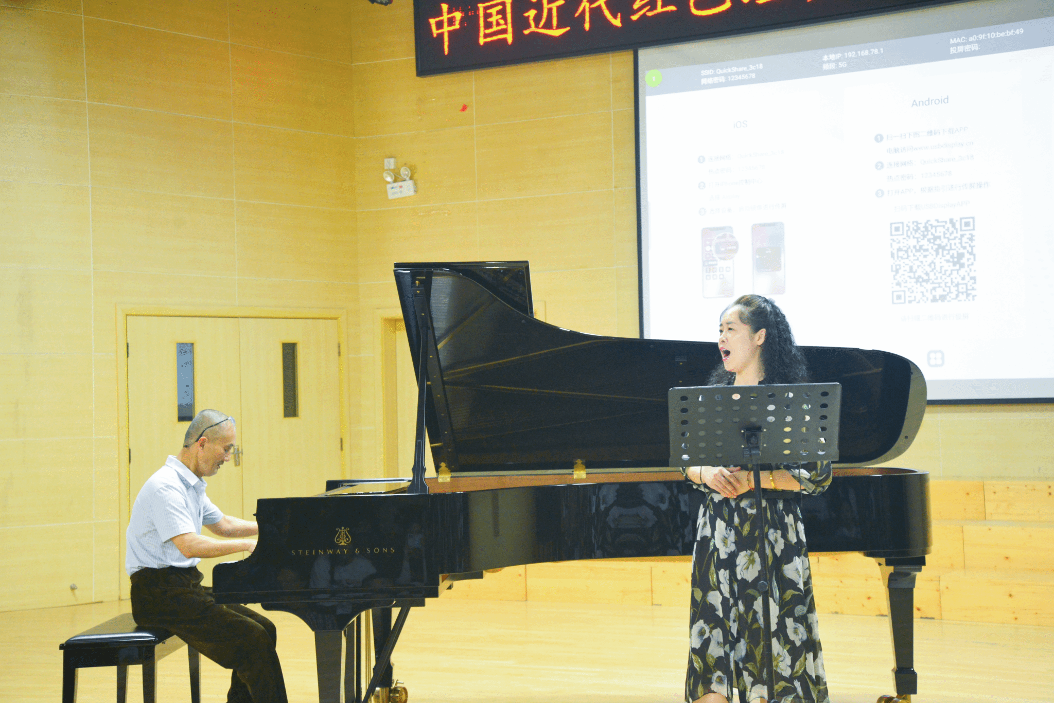 倪林副教授结合钢琴演奏技术主要介绍近代红色经典声乐钢琴伴奏,以其几十年的积累、数量众多的钢琴伴奏背谱演奏、自创的和声与音型编配及多方面的研究成果,让每一位在场的聆听者开拓眼界。他与学院本科、硕士研究生们共同合作带来许多首美妙的经典红色歌曲。在他的演奏下,师生们听到了不同于以往风格的钢琴伴奏,其技法高超、和声听感丰富。演唱的同学们在倪老师的带动下,通过对不同类型曲目的演绎,向现场观众展示了不同风格歌曲的伴奏方式和技巧。同时倪林副教授也与我院音乐系主任叶彦做示范,合作多首经典歌曲,琴声悠扬,歌声婉转动听,配合默契。